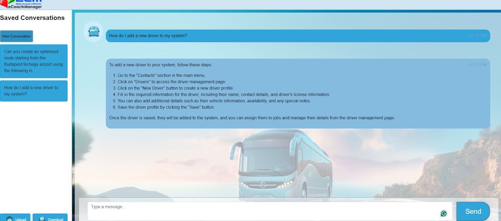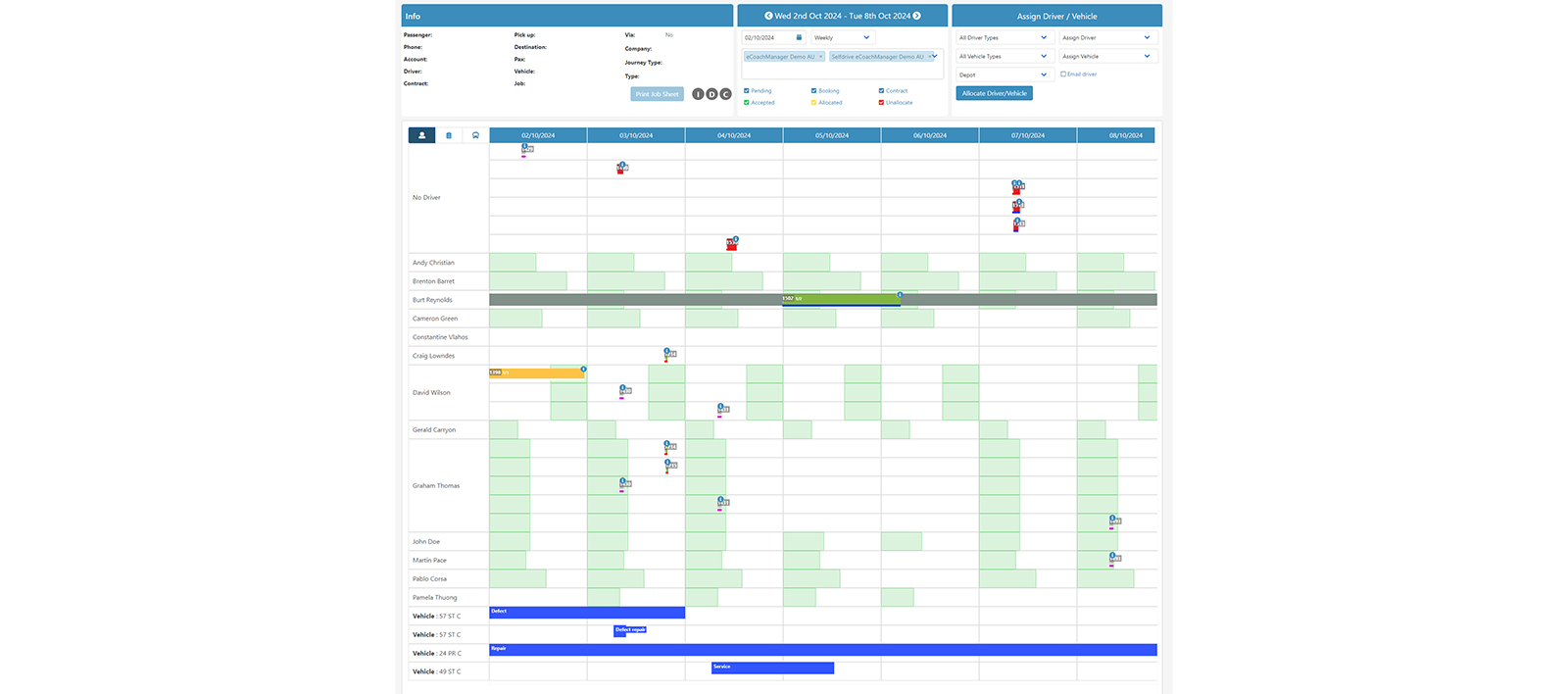 eCoachManager is a vehicle management system specifically designed for coach, minibus charter and tour companies. eCoachManager is the perfect logistics management software, providing users with a low-cost, intuitive system to manage all bookings from beginning to end. eCoachManager system automates your bookings, customer management, reporting, payments, and vehicle and driver information with vehicle tracking, and integration into many standard accounting software programs.